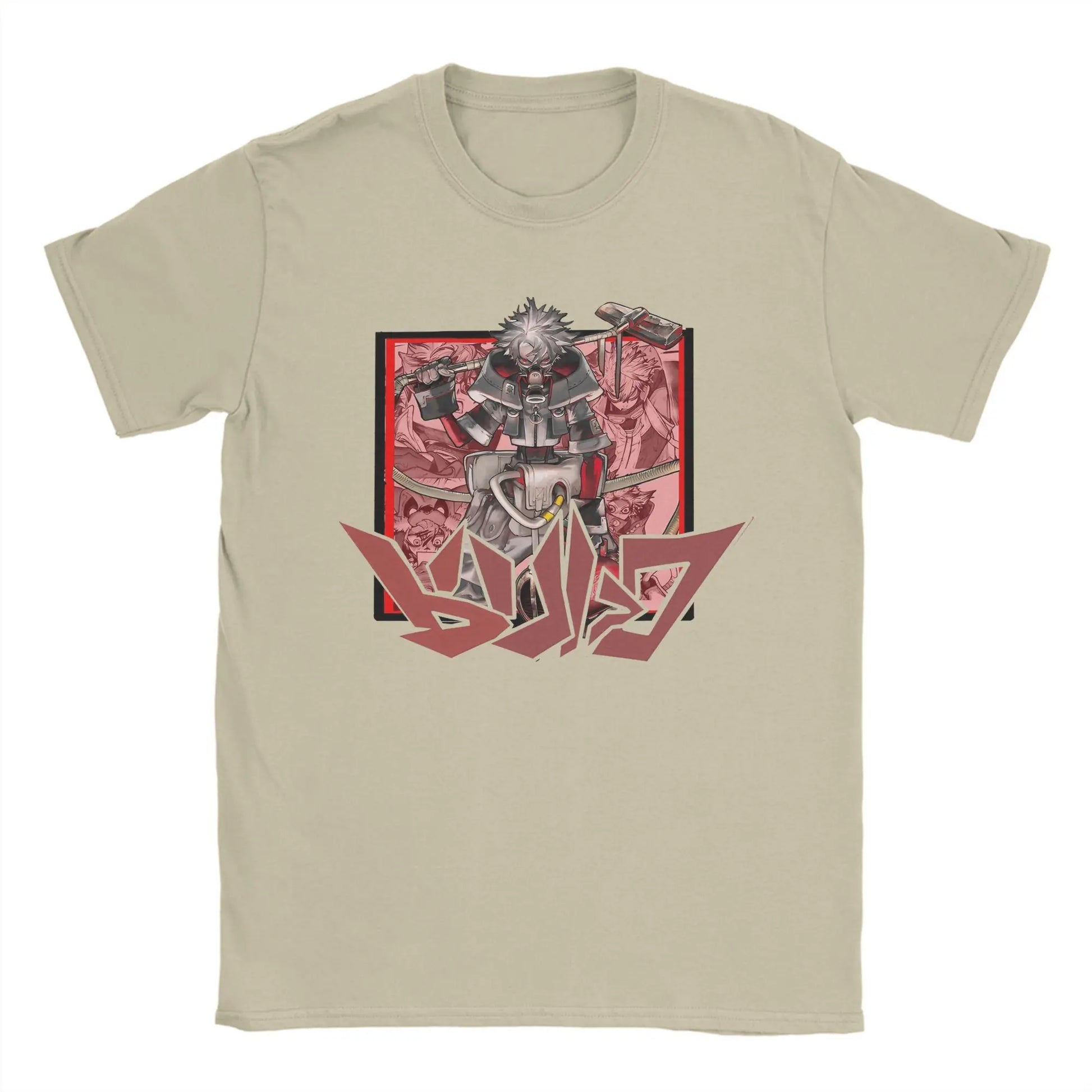 Enhance your wardrobe with the Rudo Surebrec Gachiakuta Anime Beige T-Shirt, featuring detailed manga-style artwork of Rudo Surebrec. The soft beige tone offers a unique, neutral base that makes the bold red and black design stand out while staying versatile for everyday wear.